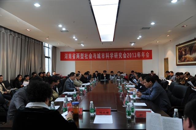 中午,由研究会副会长雷厚见主持举行了2013年湖南省两型社会与城市科学研究会年会。会上,校党委书记、城市科学研究会会长赵运林教授作了研究会年度工作报告。会议宣读了“两型社会与新型城镇化建设”论文征文获奖名单,与会领导为获奖者颁了奖。会议还通过了新增补的会员名单。