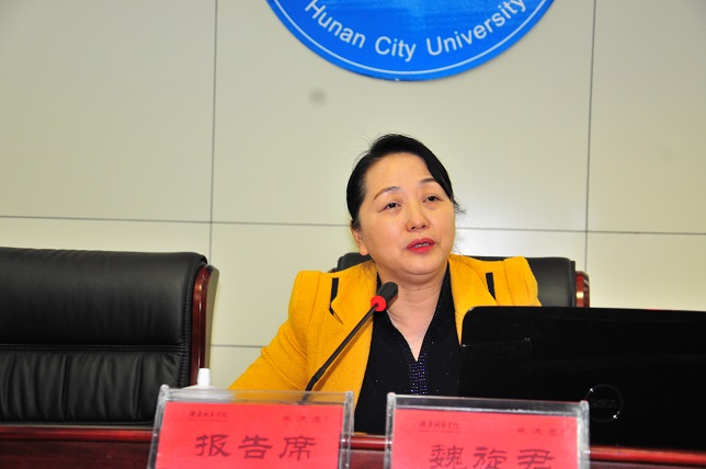 (本网讯)深化校地合作,同唱美丽奋进歌。11月12日下午,益阳市委书记魏旋君博士应邀来我校主讲“德智讲堂”第十讲,她作了题为《中国梦的探索与实践》的主题报告,参加德智讲堂的有益阳市委常委、秘书长孙达良,市直有关部门负责人,我校在家的校领导和全校科级以上党员干部及师生代表共300多人。报告会由学校党委书记赵运林教授主持。