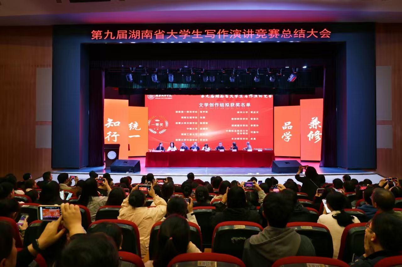 湖南省大学生写作竞赛秘书长胡辉杰教授宣布第十届湖南省大学生写作演讲竞赛将于明年在长沙学院举行。