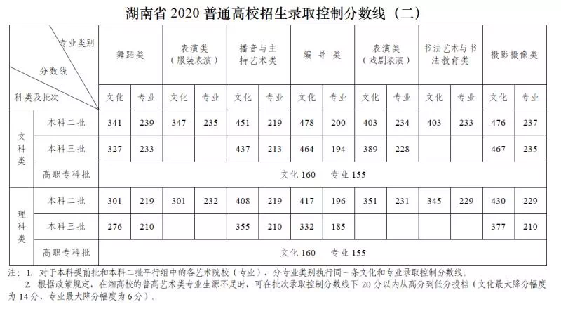 我省2020年普通高校招生录取最低控制分数线为: